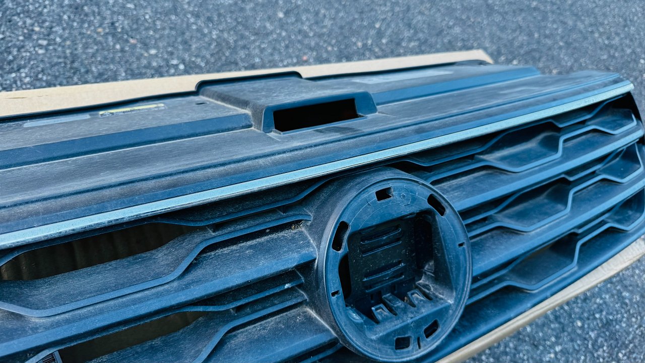 maska chladiče chrom lišta znak otvor pro radar